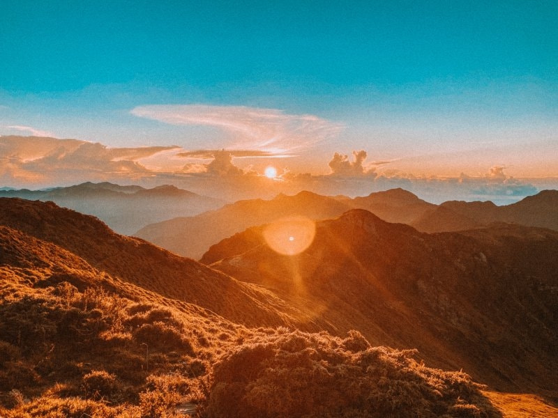 我們順利在?出前抵達峰頂,?出準時升起美到讓?想哭。