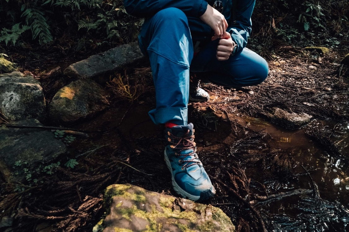 我選擇用 ANACAPA 去做測試,路線上主要皆為平穩的臺階,加上小有部分的土路及過水,背負約15升的簡單一日裝備, ANACAPA 不會給予我任何的負擔,讓我行走的速度非常之快,有一種低幫靴的靈巧感,但又擁有足夠的腳踝保護。