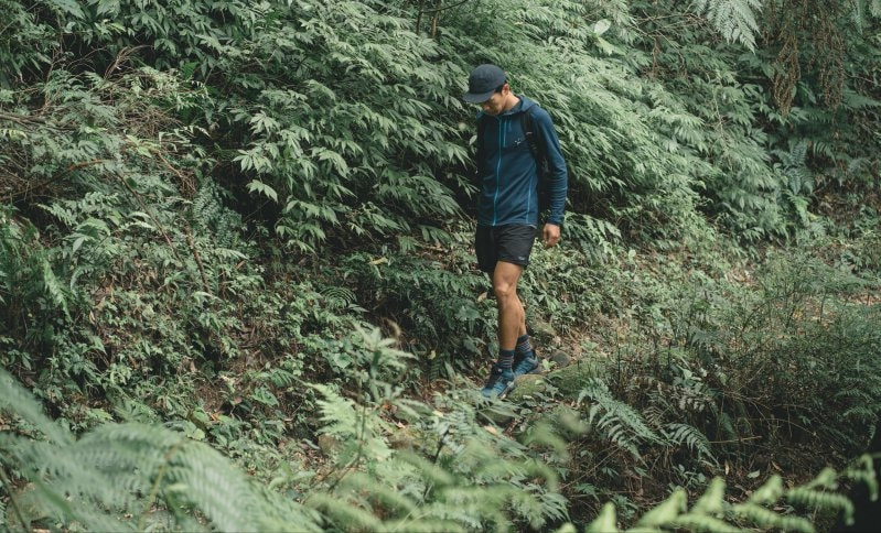 沿著山腰緩緩下切,這一帶的路徑較多落葉與樹根,這雙鞋的抓地力處理這種地形游刃有余,沒有什么問題。