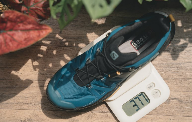 我穿著的是男款低幫,單一腳的重量為377g算是非常輕量的低幫登山鞋,比起同樣尺碼的野跑鞋僅多100g左右,但是在支撐保護性以及耐用度上絕對是大大不同。