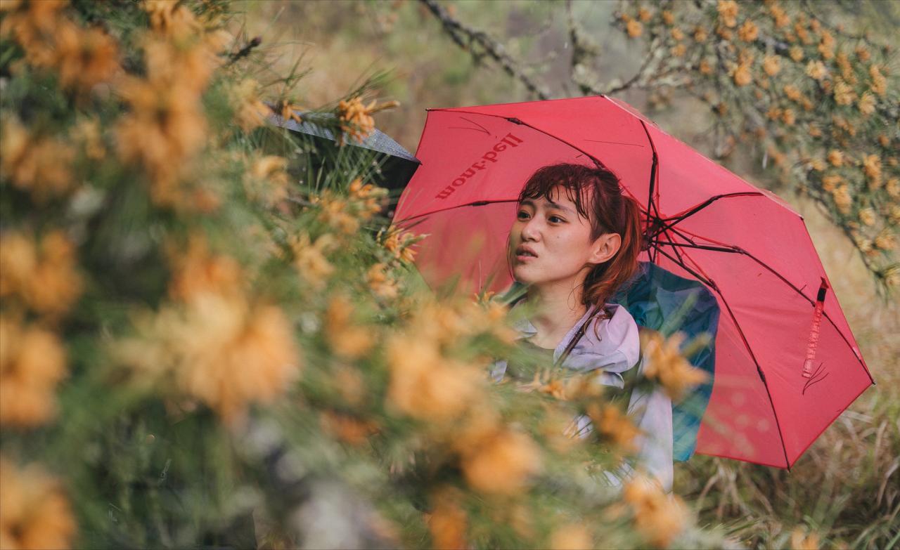 第一天的行程由于起登時(shí)就已經(jīng)是在下雨的情況,在登山口就穿著好整套的沖鋒衣褲行進(jìn),一開始上坡沒多久果然就受不了穿著沖鋒衣褲的悶熱感,我建議把沖鋒衣?lián)Q成 Kor Preshell 撐著雨傘走。對(duì)于輕量化的玩家應(yīng)該很熟悉,在樹林沒有風(fēng)沒有太多樹枝樹干及風(fēng)險(xiǎn)時(shí),撐著雨傘走是相對(duì)透氣且舒服的方式。