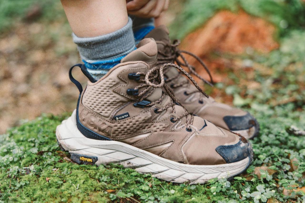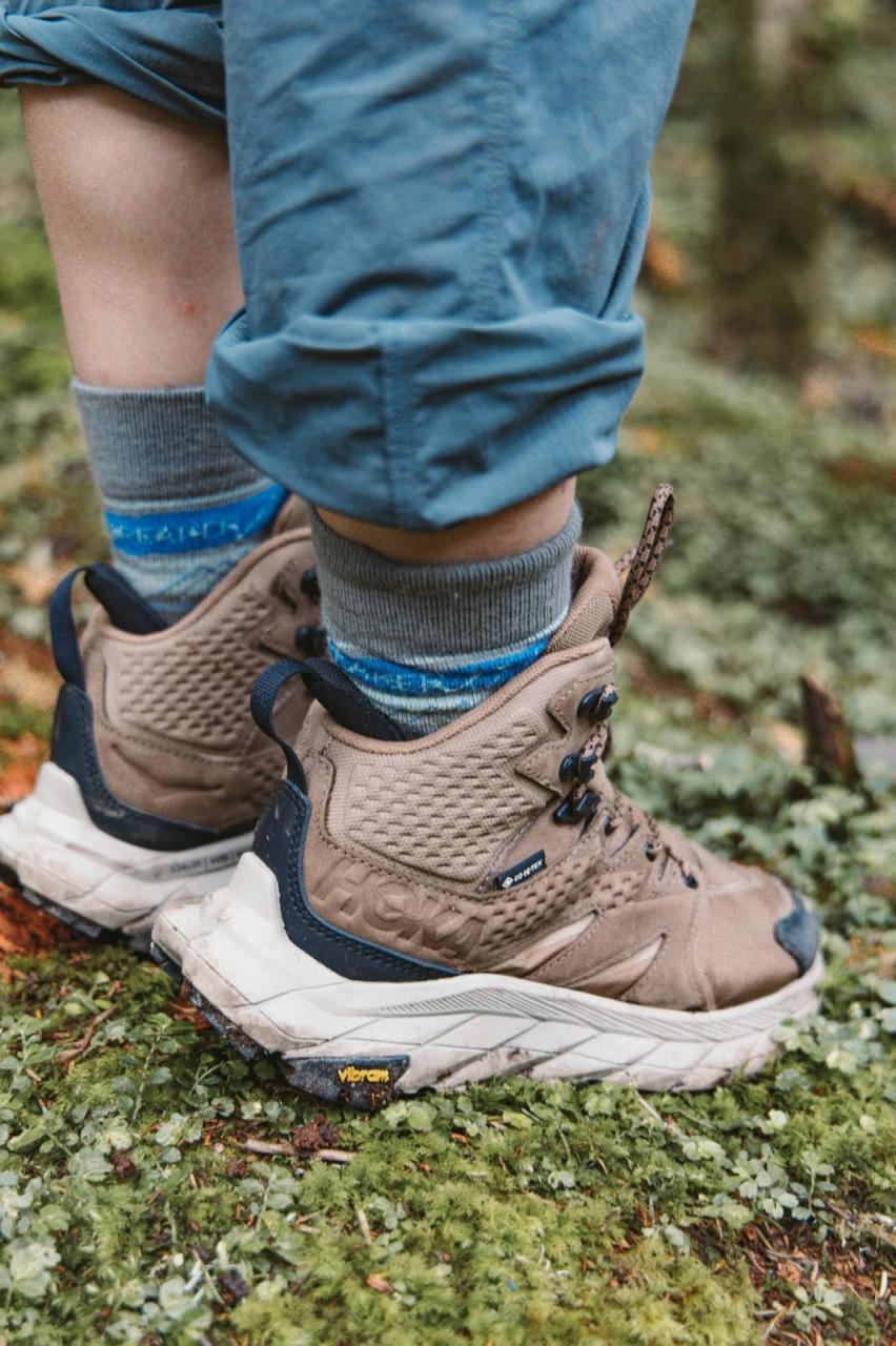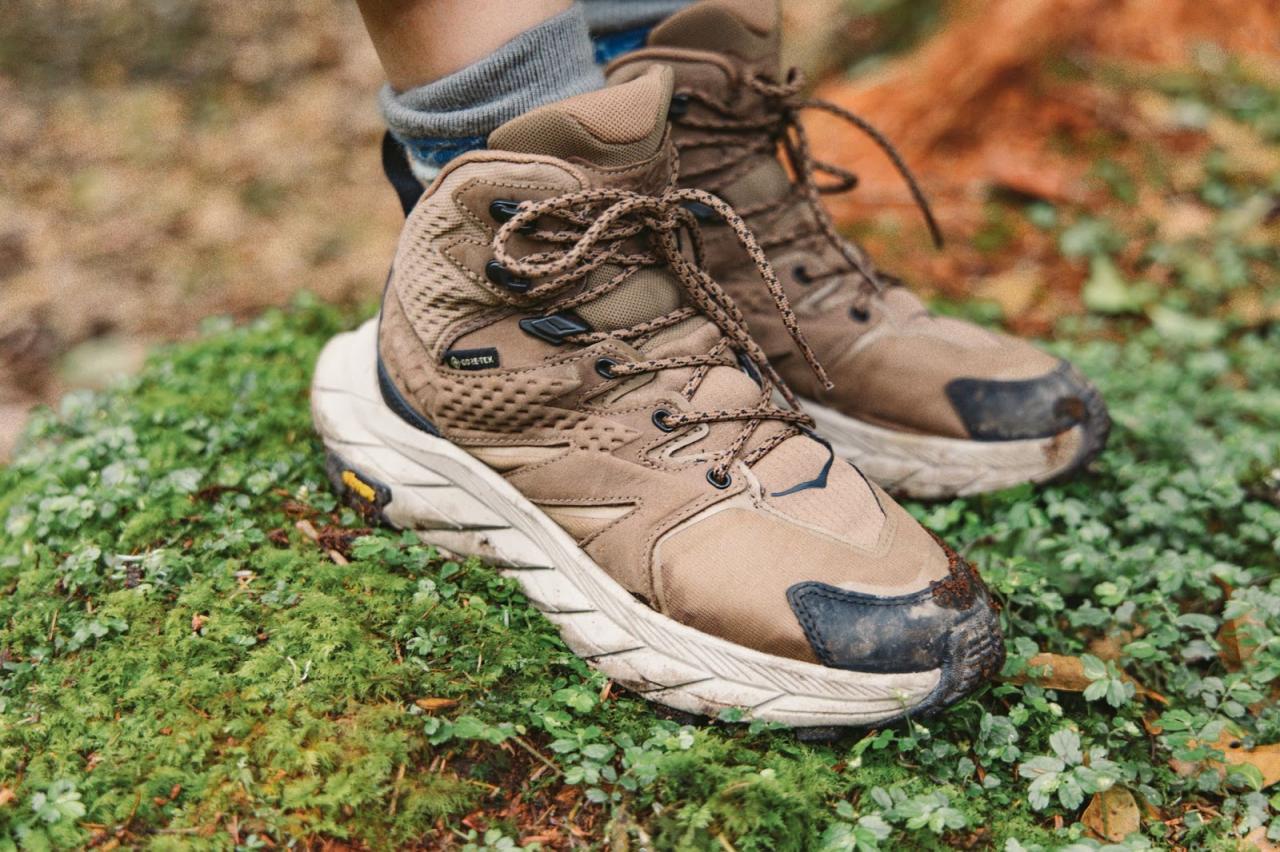 四周沾染泥土的HOKA One One ANACAPA 的鞋身顏色,低調又不無趣,真的跟山林很搭。