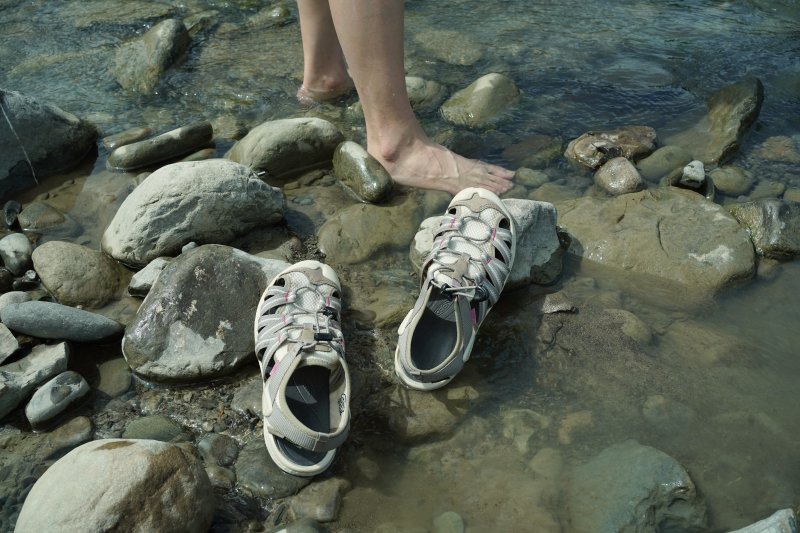 KEEN品牌鞋款的水陸兩用涼鞋一直是他們的特色之一,也因為水陸兩用的特性,適用于各式各樣的戶外活動~我有穿DRIFT CREEK,雖然這款是做輕量化的設計,但是鞋底的支撐感并沒有減弱太多,且有做符合人體工學的鞋床以提升穿著者腳的舒適度;這次穿著進行測試,這個地點不僅有需要涉水的環境,也有走水泥道路、石子路,鞋頭采護趾設計,讓人穿著涼鞋于溪(海)邊戲水時不必擔心腳趾碰撞到巖石或因沙灘上有異物而受傷!畢竟腳趾踢到石頭真的很痛。