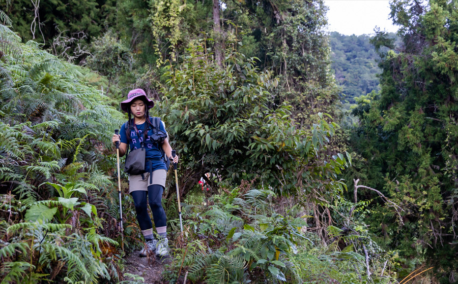 十月初我們安排了兩天一夜的行程,第一天基本上都行走于海拔2,300米左右,海拔落差并不大,只不過因為要扎營過夜所以背著重裝。然而真正累人的是第二天要陡下800米,之后回程再一路爬陡坡到營地。