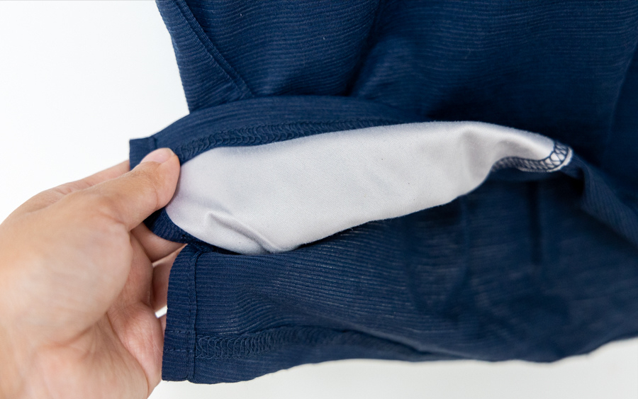 下擺內里藏了一個可擦拭眼鏡的襯布,手機、相機鏡頭髒掉的時候超級好用!隨手就可以擦拭