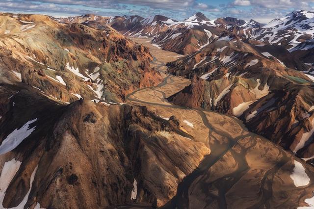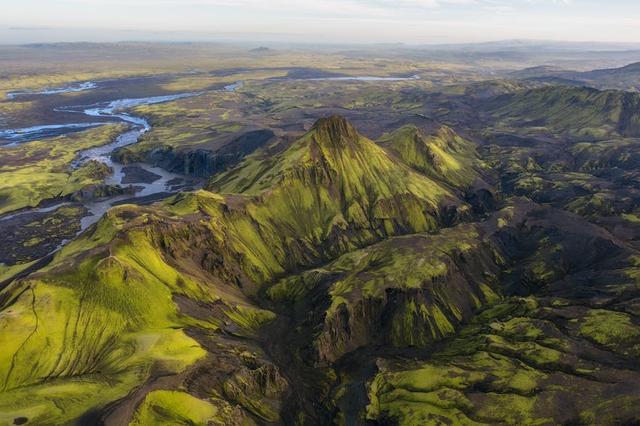 乘坐小飛機、直升機,空中拍攝冰島,能有不同尋常的角度。冰島的內陸高地地區,從空中鳥瞰尤其震撼,能更好地捕捉火山山脈的色彩與脈絡。