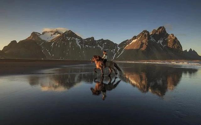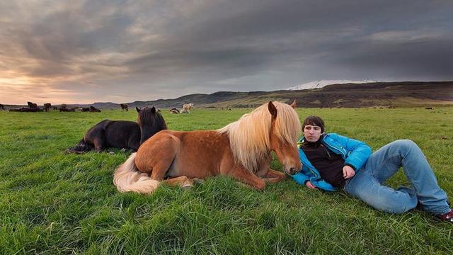 說完酷,還有萌。駿馬奔騰的優雅,是我們對馬這一物種的既定印象,然而冰島馬打破了這種常規:短腿、非主流遮面長發、呆萌,成了冰島馬的代名詞。冰島有許多馬場,沿途時不時就會見到這些秀發隨風漂浮的另類洗發水代言人,讓人忍不住上前和他們逗趣,摸摸他們柔順的長發,來個合照。能讓國際知名風光攝影師這么心甘情愿“拋頭露面”的,恐怕也就這有這些小可愛啦!
