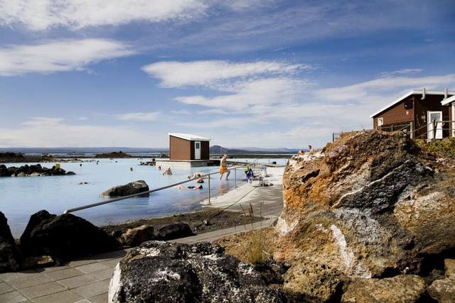 冰島最有名的兩大溫泉一南一北,南有藍湖,北有米湖。兩座溫泉的水質都富含礦物質,有良好的保健功效。藍湖的仙氣讓人心馳神往,其實米湖溫泉也一片蔚藍,完全不輸名氣更大的藍湖。總之,來冰島必須體驗泡溫泉,這才是最具冰島風的休閑方式。